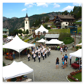 Sculture e opere d’arte si trovano, tutto l’anno a cielo aperto, nel villaggio di Chemp a Perloz, lungo l’itinerario per il Rifugio Mont Fallère e nel Bosco di Pian Villy a Champoluc.
